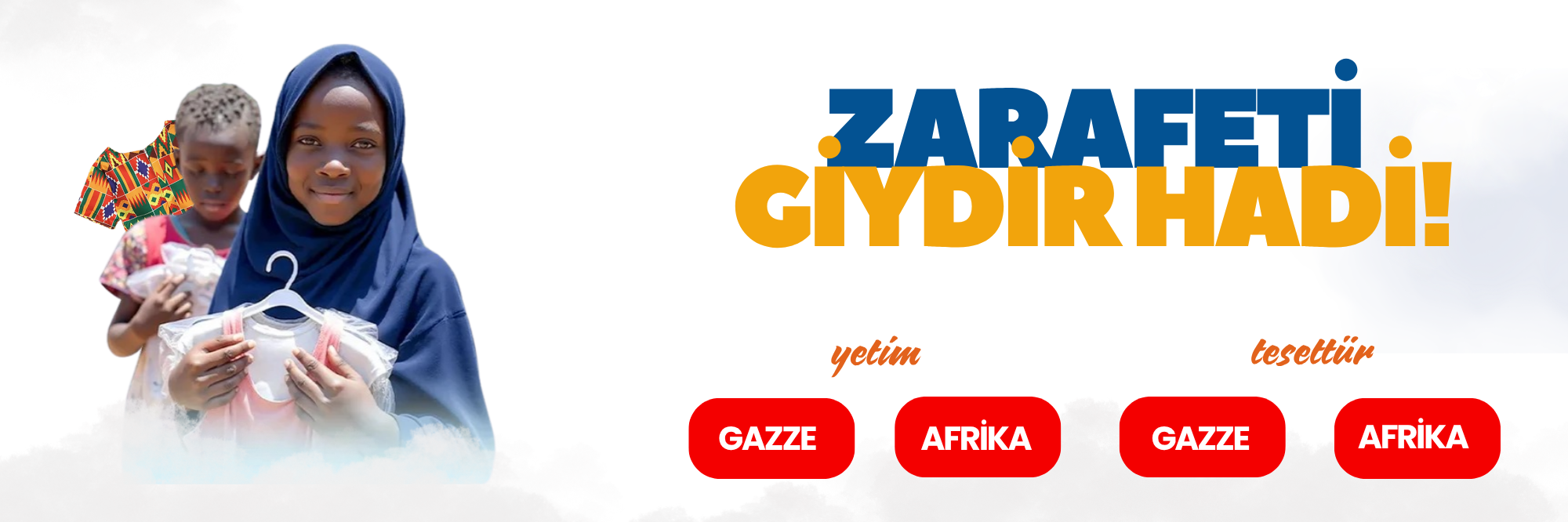 Afrika’nın zorlu yaşam koşullarında, binlerce yetim çocuk; gıda, barınma ve eğitim gibi temel ihtiyaçlarının yanı sıra en temel insan hakkı olan giysiye ulaşmakta da büyük zorluklar yaşıyor. Yıpranmış, mevsime uygun olmayan ya da tamamen giysisiz kalan bu çocuklar, hem fiziksel sağlık hem de özgüven açısından ciddi sorunlarla karşı karşıya kalıyor.